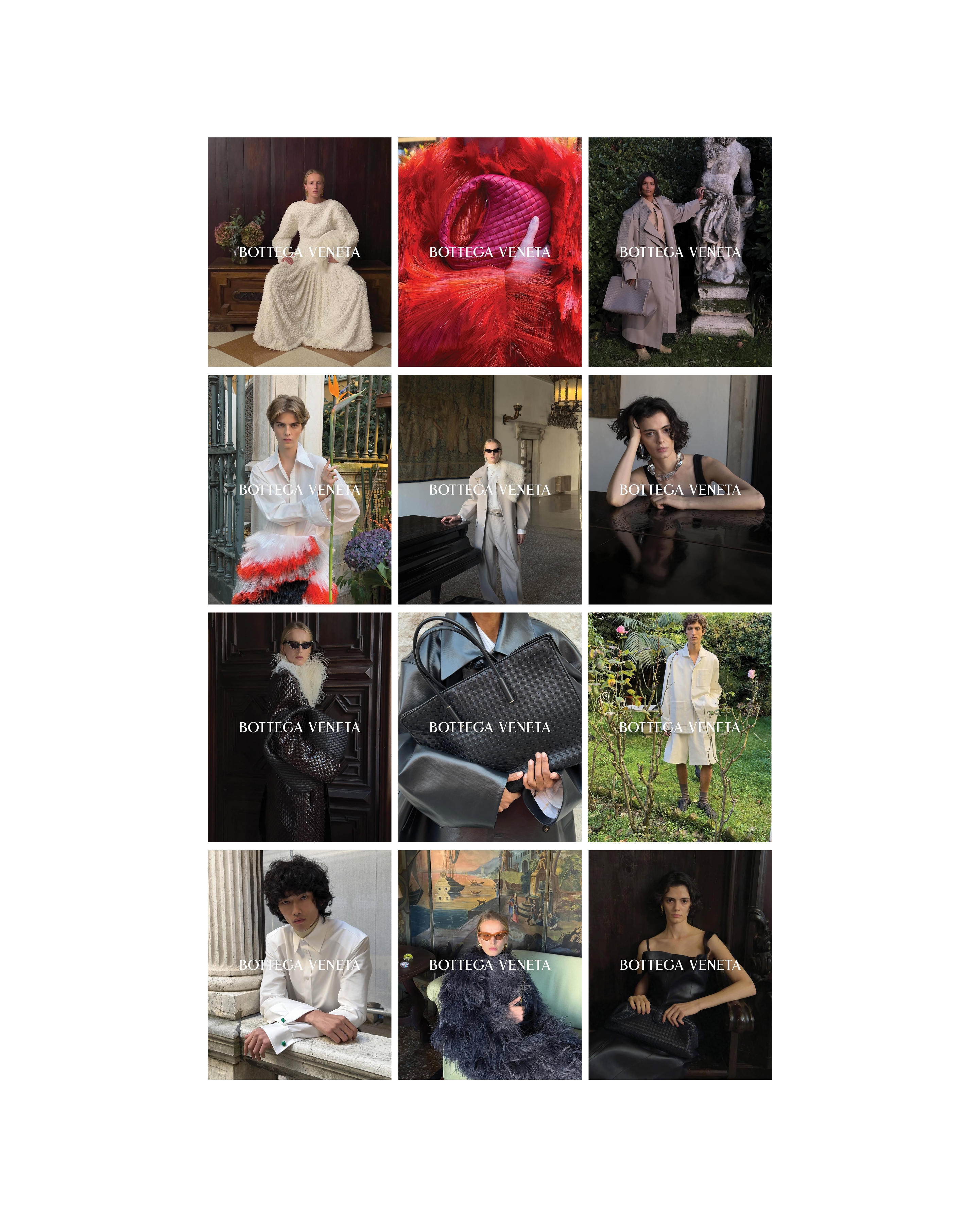 Trotter’s collection, showcased throughout the campaign, balances precision tailoring with expressive, opulent details, reflecting a new creative chapter for the house. The campaign also revisits Bottega Veneta’s artisanal heritage, highlighting refined interpretations of the Intrecciato weave alongside the house’s iconic bags. Cultural references to figures such as Peggy Guggenheim and Truman Capote further anchor the campaign in Venice’s artistic and literary history, creating a dialogue between the city’s past and the house’s contemporary vision.