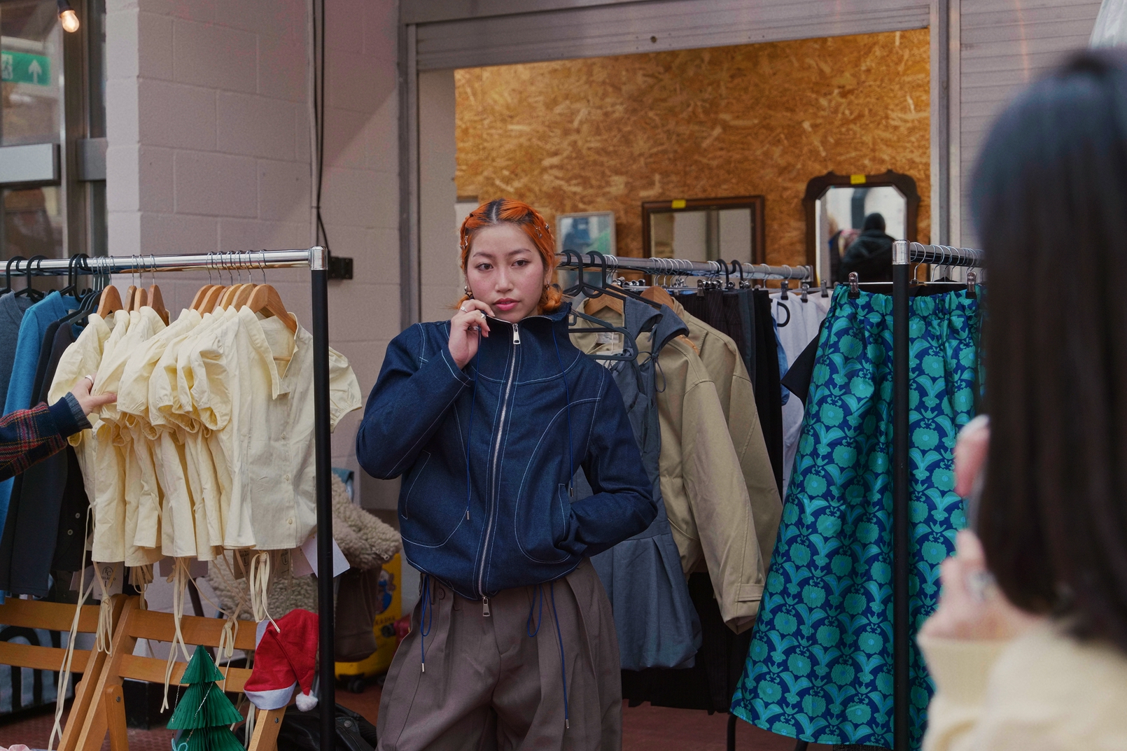 This energy was especially vivid at the sixth edition, held on 6–7 December at Hackney Depot. Sixty-two teams of designers and makers filled the industrial venue with fashion, craft, and cross-disciplinary work. Despite the expanded scale, the space never felt crowded. Instead, a natural rhythm emerged: designers discussed construction techniques at shared tables, photographers and illustrators exchanged impressions nearby, and visitors moved freely through it all, immersed in an atmosphere that felt unmistakably London.