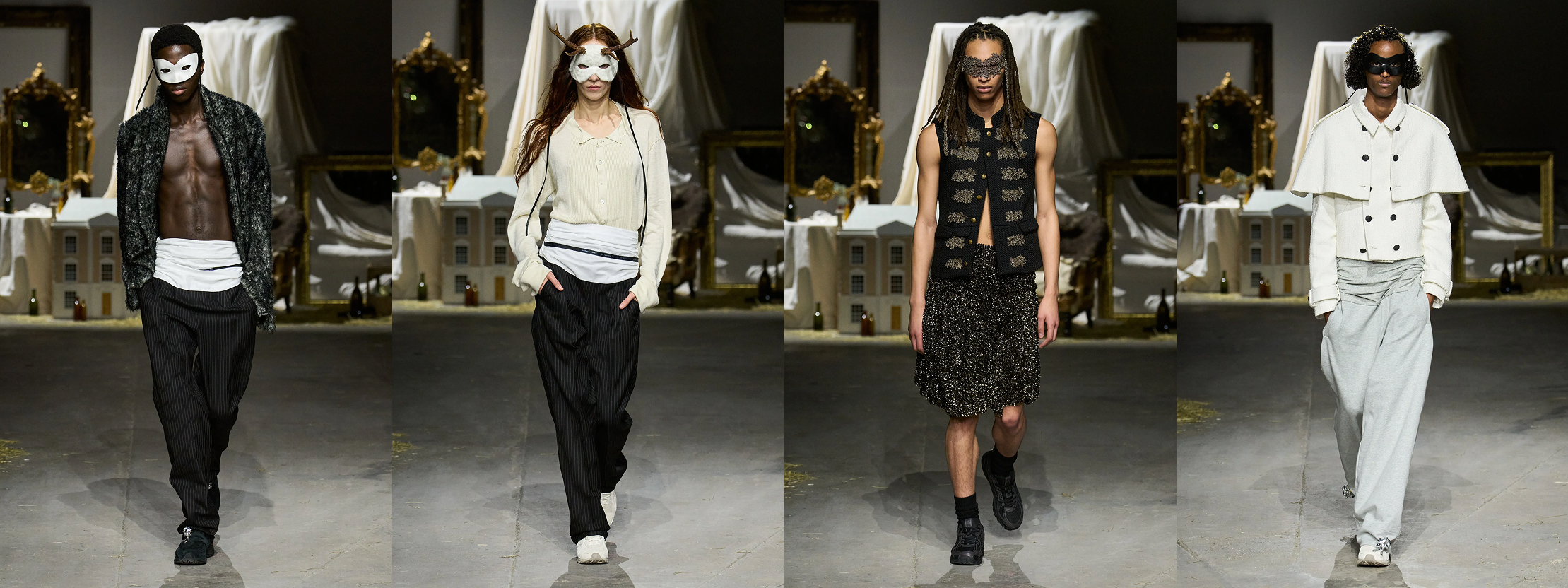 For the AW26 season, his work featured in runway shows including Oscar Ouyang, Lanvin, and LUEDER, with masks and hats that became some of the season’s most talked-about pieces.